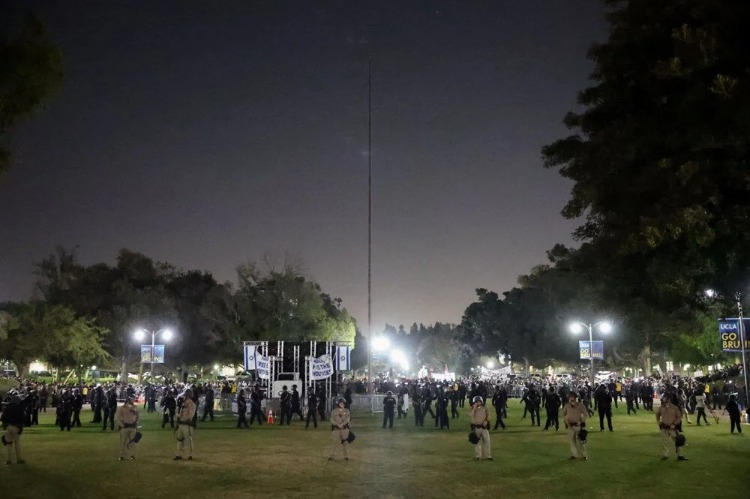 Yüzlerce kasklı polis, Los Angeles'taki Kaliforniya Üniversitesi (UCLA) kampüsüne girerek, dün İsrail yanlıları tarafından saldırıya uğrayan Filistin'e destek kampını dağıtmaya başladı.