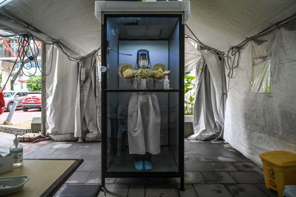 Malezya'da koronavirüs testi yapmak için bekleyen bir sağlık çalışanı