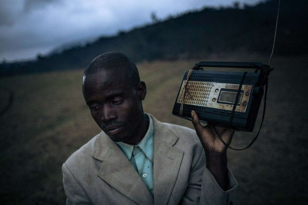 Kongo'da radyodan haber dinlemek için tepeye tırmanan adam
