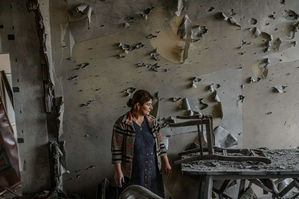 Karabağ'daki çatışmada evi zarar gören bir kadın