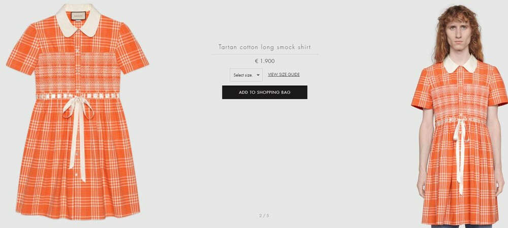 Gucci yeni tasarladığı elbisesinde maskülen kalıpları yıkan bir tasarıma imza attı.