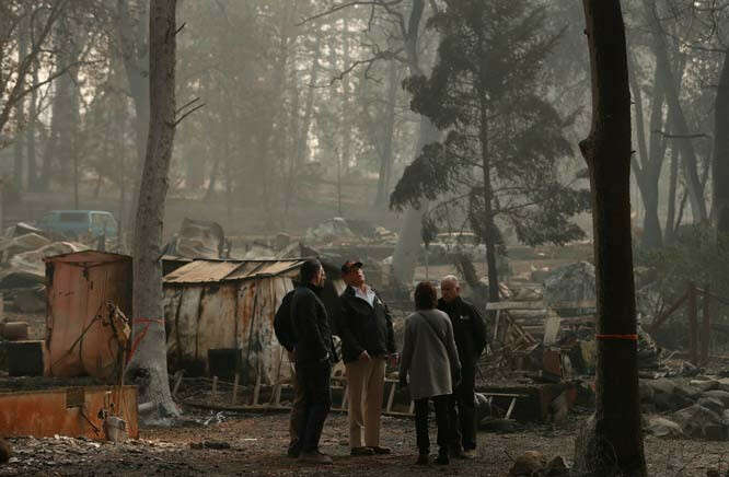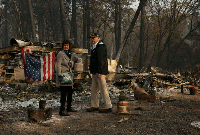 Küller arasında dolaşan Donald Trump, facianın boyutlarını bizzat gördü.