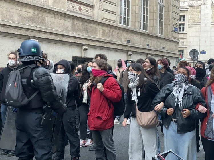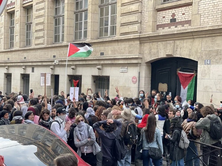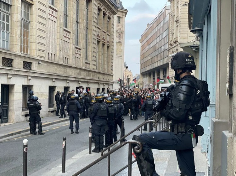 Sorbonne Üniversitesinin bir amfisinde kamp kuran eylemciler, üniversite yönetiminin Gazze'deki "soykırıma" katkı sağlayan üniversite ve firmalarla olan ortaklıklarına son vermesini talep etti. Öğrenci eylemlerine yönelik baskının son bulmasını ve Filistin'deki üniversitelerin yeniden inşa edilmesini isteyen eylemcilere destek için, başka öğrenciler de üniversitenin önünde toplandı.