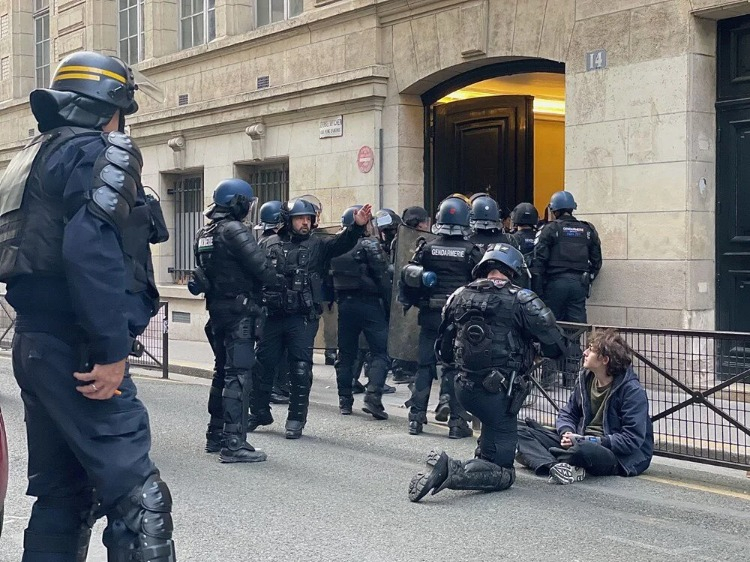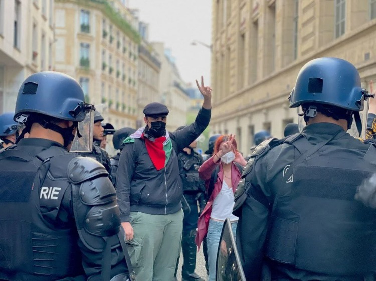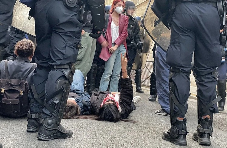 İki eylemci de, polisin kendilerini götürmesine tepki göstermek için üniversitenin önünde yola yattı. Soyadını vermeyen Sorbonne Üniversitesi öğrencisi Yasmine, öğrencilerin, Gazze'deki "soykırımı" ve üniversitelerin bu "soykırıma" yönelik suç ortaklığını protesto ettiğini belirtti. Yasmine, Sorbonne Üniversitesinin, İsrail'in silahlanmasına ve Filistin topraklarının "işgal" edilmesine katkı sağlayan İsrail üniversiteleriyle işbirliği nedeniyle Gazze'deki "soykırımın" suç ortağı olduğunu söyledi.