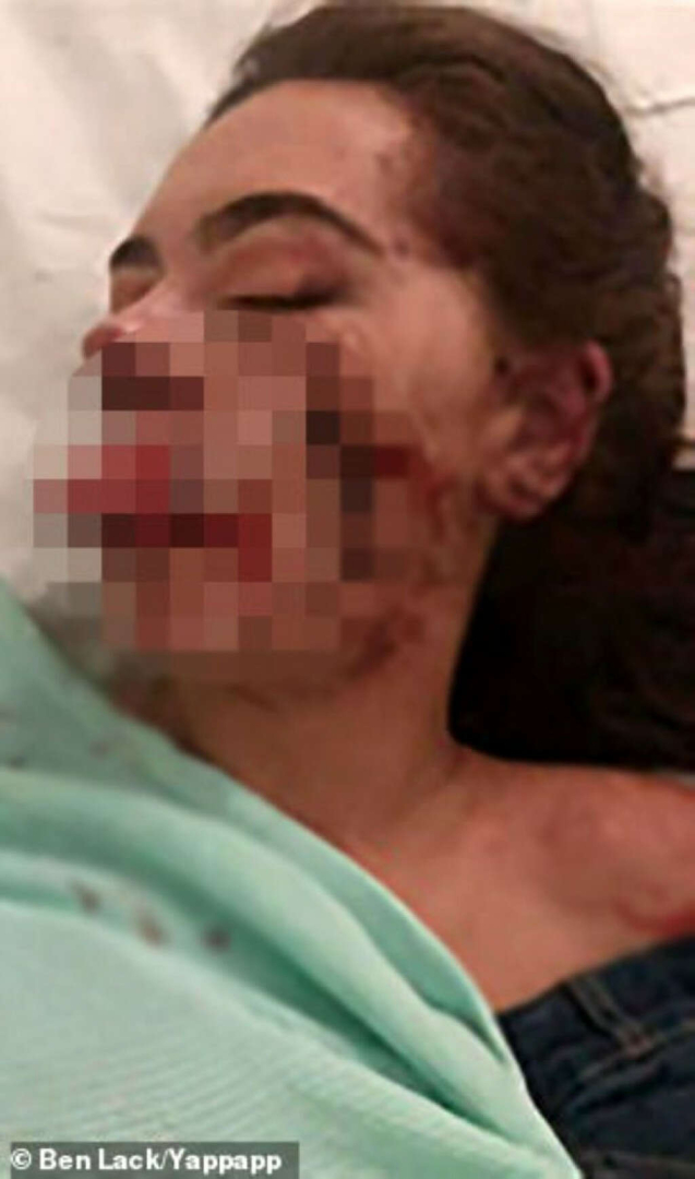 Saldırgan erkek, elindeki büyük şişeyi gece kulübünün önünde arkadaşlarıyla bekleyen 23 yaşındaki Cheyenne Mottishaw'ın yüzüne vurdu.