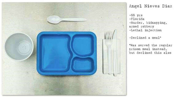 Angel Nieves Diaz: 55 Yaşında, Florida'lı. Cinayet, Silahlı Soygun ve adam kaçırma suçlarından zehirli iğne ile idama mahkum edilmiş.Yemek yemeyi reddetmiş. Bu yüzden tüm mahkumlara verilen kumanyadan kendisine verilmiş ama onu da yememiş.