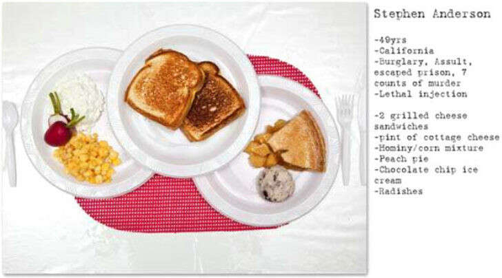 Stephen Anderson: 49 Yaşında, California'lı. Hırsızlık, Darp, Hapishaneden Kaçış ve 7 Cinayet suçlarından zehirli iğne ile idama mahkum edilmiş. Son akşam yemeği isteği 2 peynirli tost, köy peyniri, mısır unu ve mısır tanesi karışımı, şeftalili tart, çikolata parçalı dondurma ve turp olmuş.