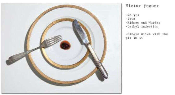 Victor Feguer: 28 yaşında, Lowa'lı. Adam kaçırma ve cinayet suçlarından zehirli iğne ile idam edilmiş. Son akşam yemeği isteği tek bir zeytin olmuş. Öldükten sonra gömülünce bu zeytinin ağaca dönüşüp barış sembolü olacağını düşünüyormuş.