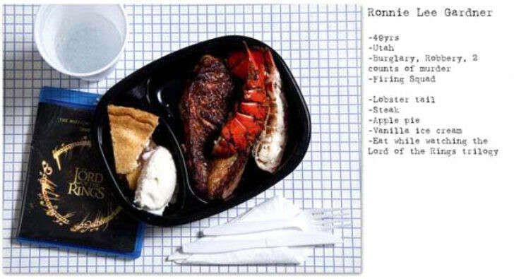 Ronnie Lee Gardner: 49 yaşında, Utah'lı. Hırsızlık, 2 Cinayet suçundan kurşuna dizilerek idam edilmiş. Son akşam yemeği isteği Istakoz kuyruğu, et, elmalı pasta, vanilyalı dondurma ve yemek yerken Yüzüklerin Efendisi üçlemesini izlemek olmuş.