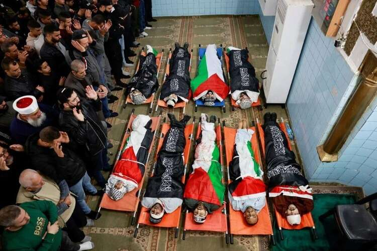 Hayatını kaybeden Filistinlilerin cenazeleri akşam namazına müteakip sloganlar eşliğinde kaldırıldı. Filistinli silahlı gruplar cenaze töreni sırasında havaya ateş etti.
