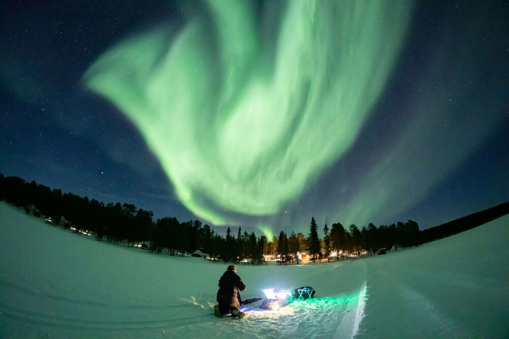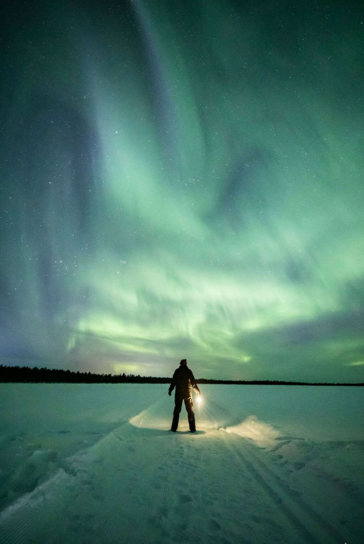 Toras-Sieppi gölünün üzerinde görüntülenen kuzey ışıklarının dansı bir saatten fazla sürdü. Martın, kutup ışıklarının görülebildiği en iyi ay olduğu belirtiliyor.