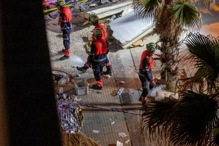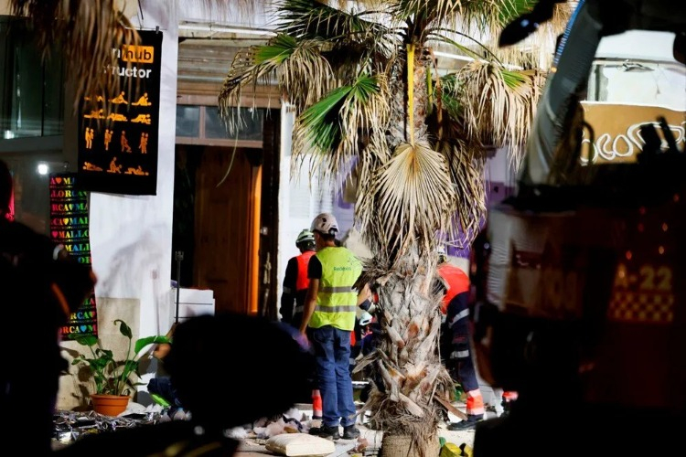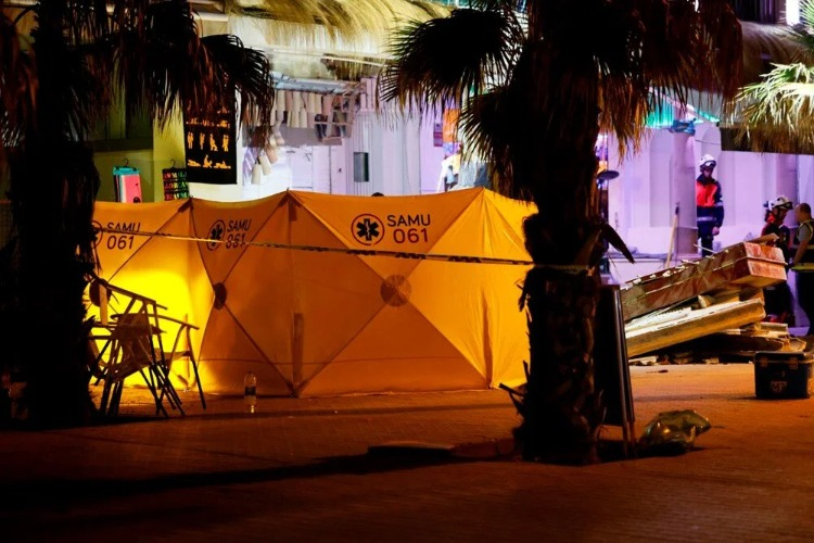 İspanya'ya bağlı Balear adalarının en büyüğü olan turistik Mallorc'da 2 katlı bir restoranın terasında zemin çöktü.