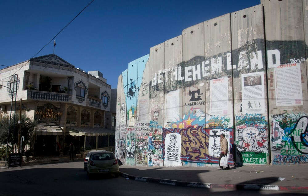 "DÜNYANIN EN KÖTÜ MANZARALI OTELİ" "Dünyanın en kötü manzaralı oteli" olarak kabul edilen The Walled off Hotel'in önünde Banksy'nin tasarımı olan komi maymun heykeli yer alıyor. Özerk Bölge Beytüllahim'de açılan ve İsrail-Filistin savaşına dikkat çekmeyi amaçlayan otelin tüm pencerelerinden İsrail'in ördüğü duvarlar görülüyor.