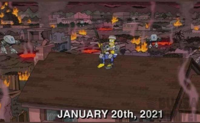 ABD'de "iç savaş 2021" etketiyle atılan tweet'lerde, Simpsonlar dizisinde 20 Ocak 2021'de Homer Simpson'ın bir evin çatısında elinde silahla beklediği hali paylaşıldı. 20 Ocak ayrıca Trump'ın başkanlığı Joe Biden'a teslim edeceği gün.
