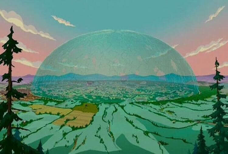 Simpsons'ta geçen olması beklenen kehanetler: Aç gözlü şirketler çevresel bir faciaya sebep olacak ve kirletilmiş alandan korunmak için bir kubbe kurulacak.