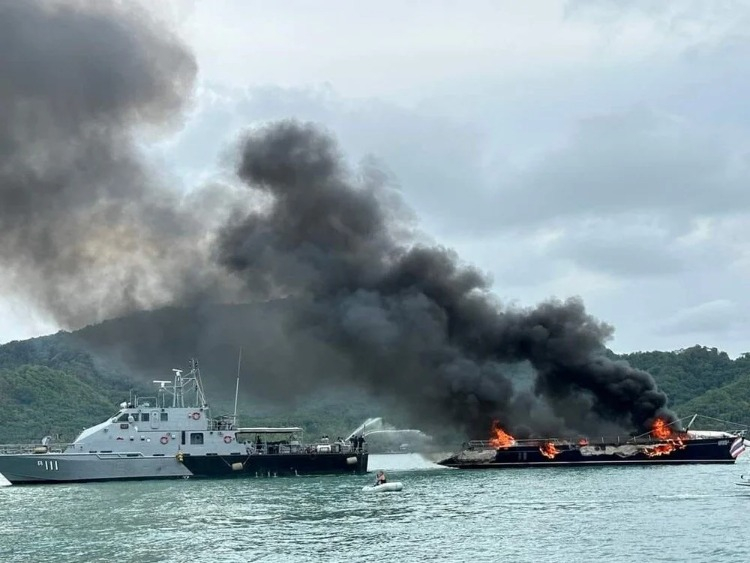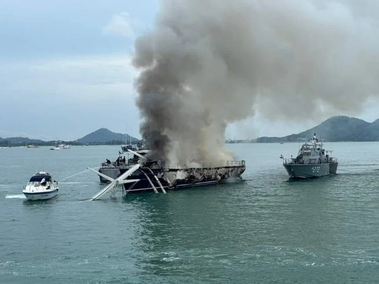 Tayland'ın turistik Phuket Adası'nın Chaong Koyu’nda demir atan milyonlarca dolar değerindeki süper yatta pazartesi günü henüz bilinmeyen bir nedenle yangın çıktı.