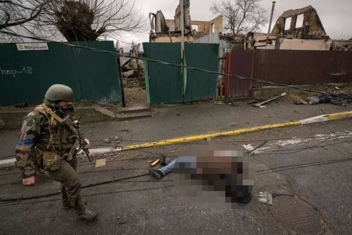 Kiev'e 37 kilometre mesafedeki ilçede, dünyayı dehşete düşüren sokak fotoğraflarını toplu mezardan gelen görüntüler izledi. Bucha'daki bir kilisenin bahçesinde ortaya çıkarılan toplu mezarda onlarca ceset vardı. Yaklaşık 15 metre uzunluğundaki toplu mezarda bazı sivil kurbanların başları dışarıdaydı, bazılarının da elleri ve ayakları.