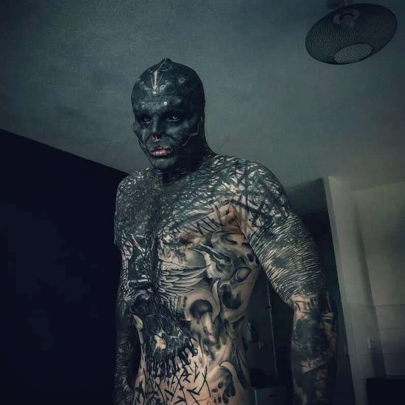 32 yaşındaki Fransız Anthony Loffredo, dövme merakını abartırken tüm vücudunu dövmelerle kaplamıştı.