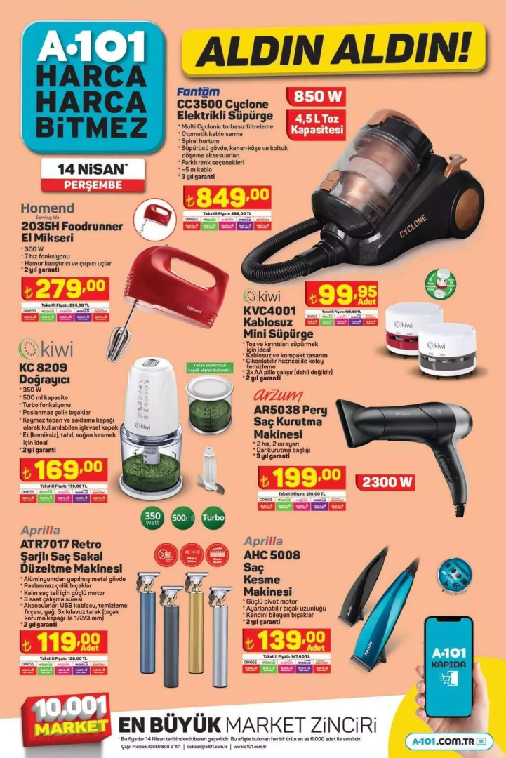 A101 aktüel ürünler kataloğu 14 Nisan 2022 yayınlandı! A101'de bu hafta bluetooth kulaklık 199,00 TL, el mikseri 279,00 TL, doğrayıcı 169,00 TL, saç sakal düzeltme makinesi 119,00 TL, kablosuz mini süpürge 99,95 TL, pompalı termos 155,00 TL, bebek nevresim takımı 99,95 TL, hava nemlendirici 239,00 TL'den satışa sunulacak. Peki, A101'de bu hafta neler var? İşte, A101 aktüel ürünler kataloğu 14 Nisan 2022...