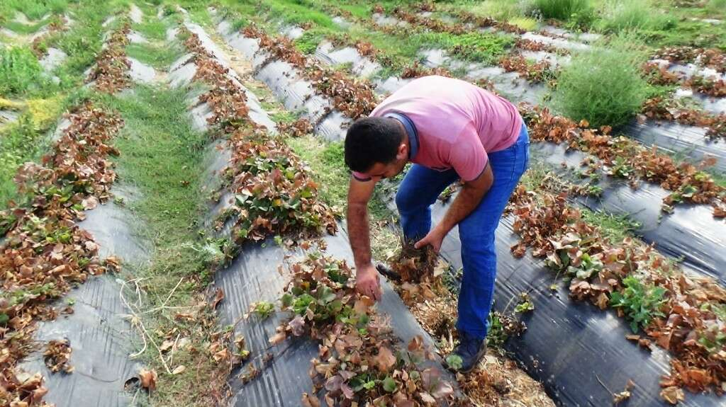 Kahraman, "Son aylarda yaşanan kuraklık nedeniyle görüldüğü gibi çileklerimizi kurumuş durumda. Her yıl bu vakitlerde yüksek rekolte elde edebiliyorduk. Normalde bir dönümden 3 ton verim alabiliyorduk. Ancak bu yıl yaşanan kuraklıktan dolayı yüzde 70 verim alamadık. Bu yıl ancak yüzde 30 verim alabildik. Geçtiğimiz yıllarda bu mevsimde yurt içi ve yurt dışına satış yaparken bu yıl ancak bize yetecek kadar verim alabiliyoruz. İlçedeki tüm çilek üreticileri bu kuraklıktan etkilenmiş durumda. Muhtemelen bu çilekleri kaldırıp tekrar ekeceğiz" dedi.