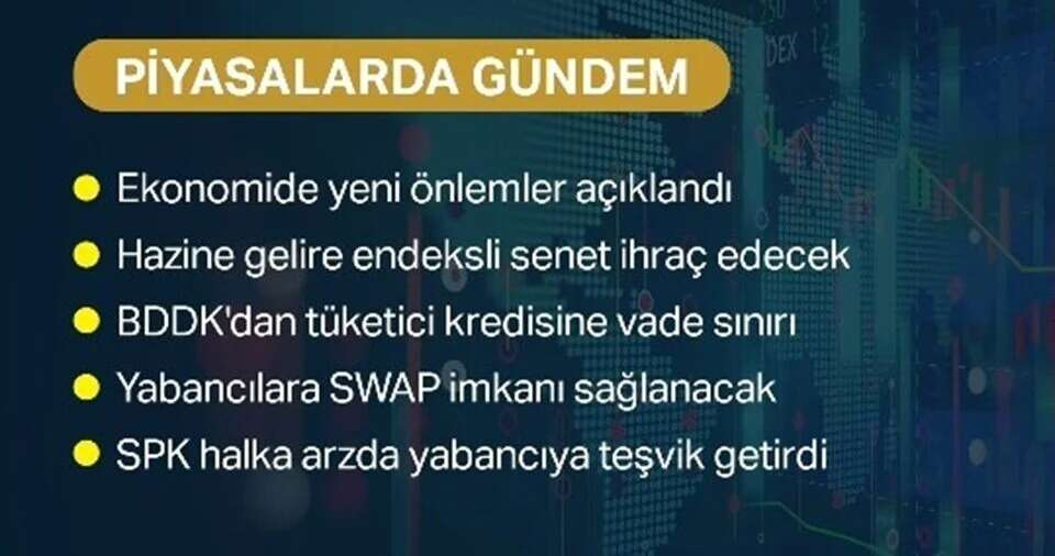 Hazine ve Maliye Bakanlığı, BDDK ve SPK ekonomiye ilişkin atılacak yeni adımları açıkladı. Açıklanan kararlar; - Hazine ve Maliye Bakanlığı, Türk lirası cinsi varlıkların teşvik edilmesi amacıyla Gelire Endeksli Senet GES) ihraç edileceğini açıkladı. Senetler, 3 ayda bir kupon getirili, asgari getiri garantisi ile getiri oranı ve vade yapısı ihraç duyurusunda ilan edilecek şekilde duyuruldu. Gelire endeksli devlet iç borçlanma senedi talep toplama işlemlerinin ise 15 Haziran'da başlayacağı belirtildi.