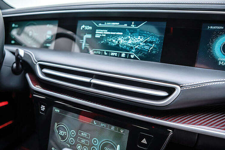 TEKNOLOJİK İÇ MEKAN Otomobilin iç mekânında kaliteli ve şık malzemelerle birlikte yüksek teknoloji yer alıyor. Dijital bilgi-eğlence ekranı hem bilgilerin kolaylıkla takibini hem de yolcuya özel içeriğin görünürlüğünü sağlıyor. Ekran otomobilin akıllı bir yaşam alanına dönüşümünü destekliyor.