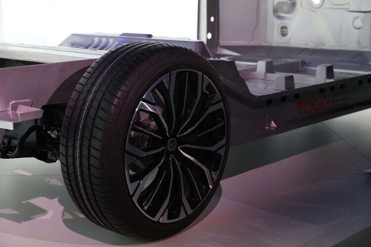 1) Özgün Otomotiv sektöründe daha önce ortaya çıkarılmış hiçbir platform ile ilişkisi olmayan, tamamıyla TOGG mühendisleri tarafından geliştirilen ve tüm fikri ve sınai mülkiyet hakları yüzde 100 TOGG'a ait olan, yüksek teknolojiye sahip doğuştan elektrikli ve bağlantılı platform.