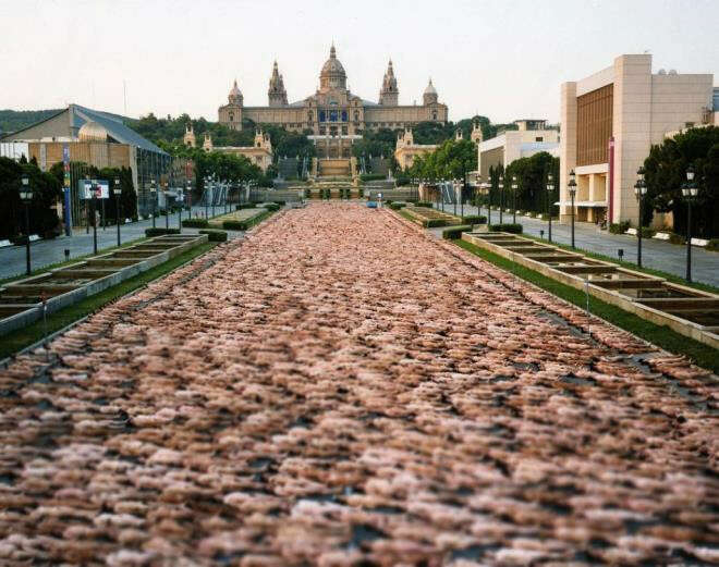 Spencer Tunick, 2002'de 25. São Paulo Bienali'ne davet edildi ve uluslararası sanat camiasında olumlu karşılandı. Aynı yıl, Şili'de 5.000 gönüllü ile bir projeyi tamamladı ve ardından bir Şili gazetesi tarafından "Yılın Adamı" seçildi. Nisan 2003'te Londra'da Saatchi Galerisi önünde 160 çıplak gönüllüyü ve daha sonra Selfridges mağazasında 500 çıplak kişiyi fotoğrafladı. Haziran ayında ise Barselona'da 7.000 çıplak insanın enstalasyonunu organize edip büyük bir fotoğraf çalışmasına imza attı.