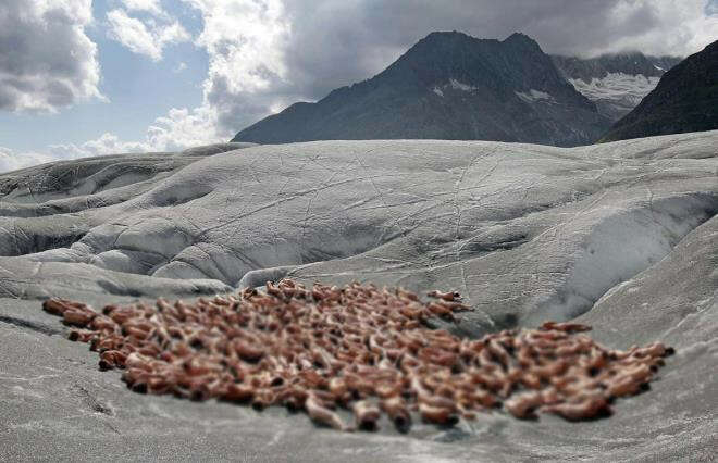 Tunick, 18 Ağustos 2007'de Aletsch Buzulu'nda Greenpeace ile birlikte hareket ederek dünya buzullarının küçülmesine ve küresel ısınmaya dikkat çekmeyi amaçlayan bir yerleştirmede 600 çıplak insana yer verdi. Ekim 2009'da Greenpeace ile işbirliği içinde iklim değişikliğinin Fransız şarap üretimi üzerindeki etkisine dikkat çekmek için başka bir enstalasyon gerçekleştirdi.