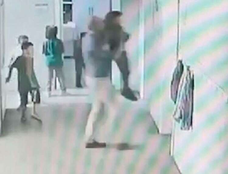 Görüntülerde, Mehmet Serkan G.'nin E.S.'yi koltuk altından tutup, diğer öğrencilerin gözü önünde sınıfın içine doğru fırlatması yer alıyor.