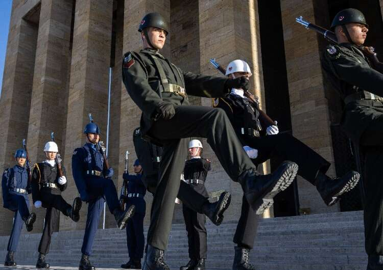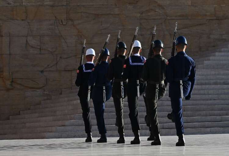 Kara, Deniz ve Hava Kuvvetleri Komutanlıklarından askerlerin oluşturduğu saygı nöbetçileri, Anıtkabir bünyesindeki Muhafız ve Merasim Bölüğüne bağlı görev yapıyor.