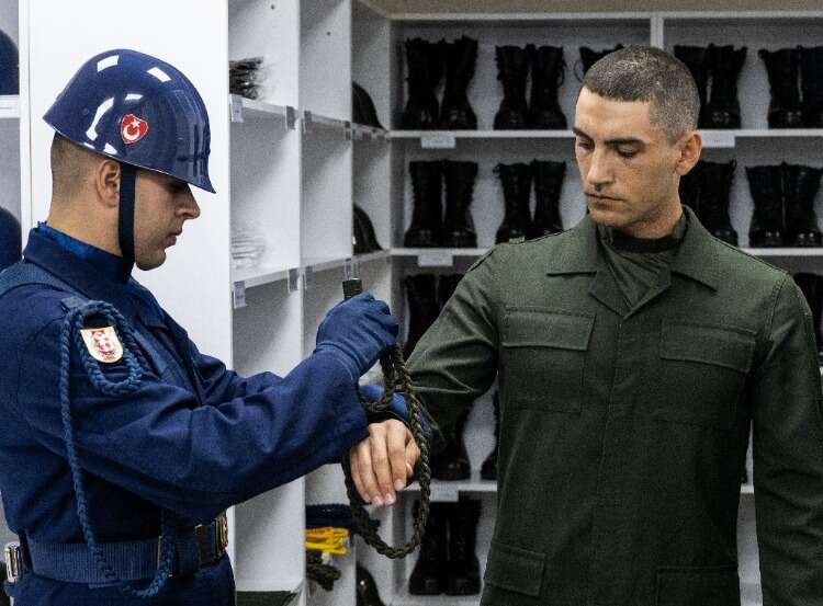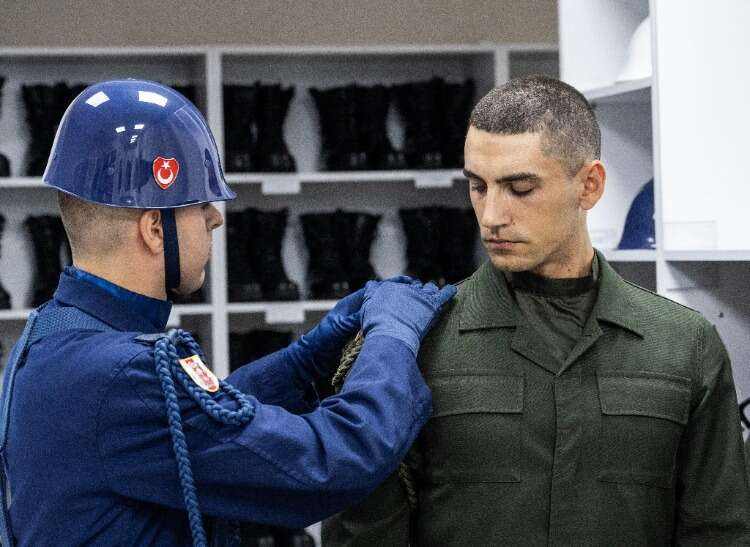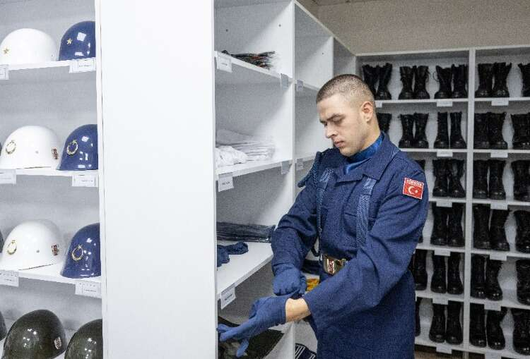 Kıyafetlerini giyen askerler tüfeklerini almalarının ardından son kontroller için komutanlarının karşısına çıkıyor.