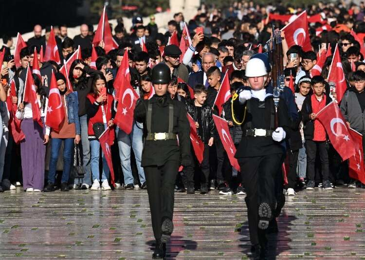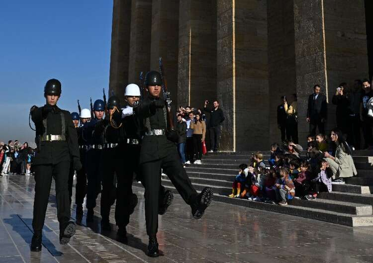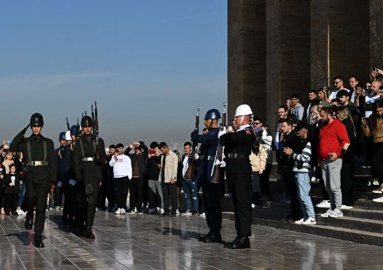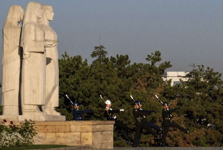Bir saatlik nöbetleri süresince hiç hareket etmeyen askerlerin nöbet değişimi yerli ve yabancı ziyaretçiler tarafından ilgiyle takip ediliyor.