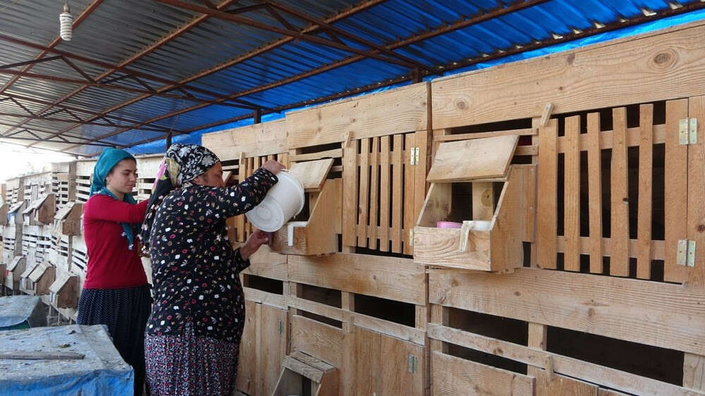 Türk Asil Hint Horozu üretimi yapan çiftçi Ramazan Türkmen ve üniversite mezunu gelinleri, yetiştirdikleri horozların satışından aylık 30 bin lira kazanç elde ediyor.