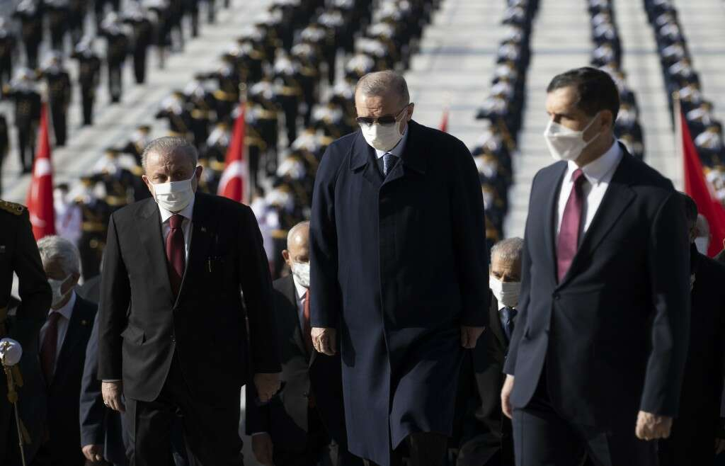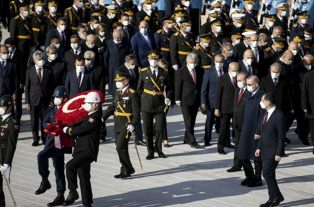 Törende Cumhurbaşkanı Erdoğan, TBMM Başkanı Mustafa Şentop, Cumhurbaşkanı Yardımcısı Fuat Oktay, CHP Genel Başkanı Kemal Kılıçdaroğlu, MHP Genel Başkanı Devlet Bahçeli, İYİ Parti Genel Başkanı Meral Akşener, Cumhurbaşkanlığı Kabinesi üyeleri, yüksek yargı temsilcileri, siyasi parti temsilcileri, Genelkurmay Başkanı Orgeneral Yaşar Güler ve kuvvet komutanları ile birlikte Aslanlı Yol'dan yürüyerek Atatürk'ün mozolesine geldi.