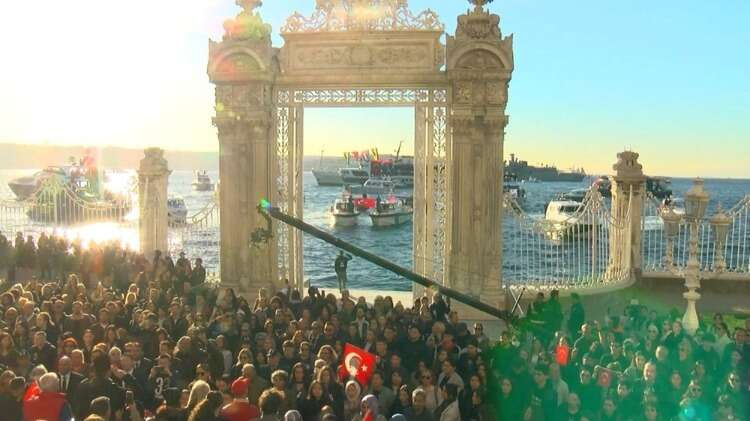 Türk Deniz Kuvvetleri'nin Barbaros sınıfı fırkateynlerinden TCG Salihreis ve beraberindeki tekneler de Dolmabahçe Sarayı önünde durdu.