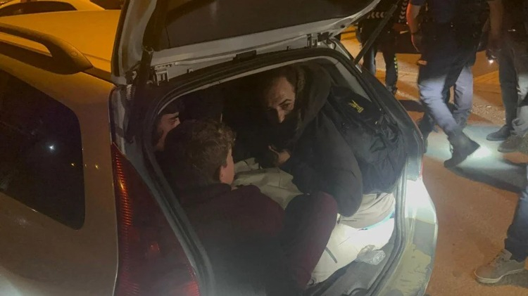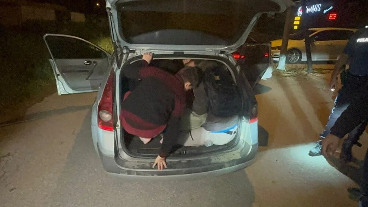 Polis ekipleri, otomobilin içinde aralarında çocukların ve kadınların da bulunduğu 14 düzensiz kaçak göçmenin olduğunu tespit etti. Tıka basa adeta istiflenerek otomobilin içine doldurulan göçmenlerin halsiz olduğu ve ayağa kalkmakta zorluk yaşadıkları görüldü.