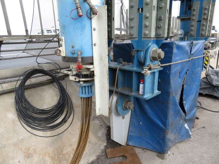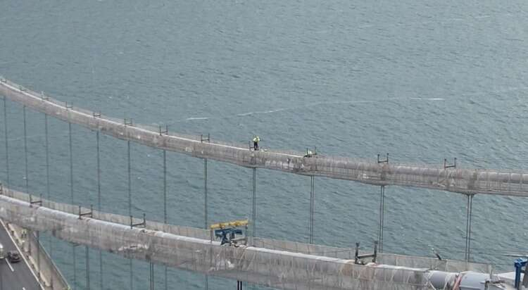 Köprüdeki askı halatlarının değiştirilme çalışmaları devam ediyor.