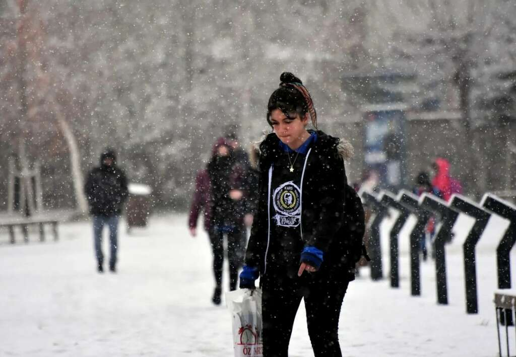 Kars'ta etkili olan güneşli ve sıcak hava yerini kar yağışına bıraktı. Gece aralıklarla yağan kar, sabah saatlerinde etkisini artırdı.