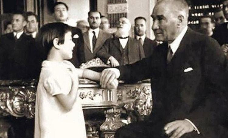 Küçük Nuriye’nin çiçek takdimine sevinen Atatürk, o anda sonsuza dek kutlanacak olan, 23 Nisan Ulusal Egemenlik ve Çocuk Bayramı’nın işaretçisi o diyaloğu gerçekleştiriyor. Nuriye’yi kucağına alan Atatürk, önce ona “Kimin kızı olduğunu” soruyor. Sonra da “Aferin, ilk şapka giyen sen oldun” diyerek tebrik ediyor ve “Arkadaşlarını, çocukları, okulunu seviyor musun?” sorusunu yöneltiyor. Minik Nuriye ise “Çok seviyorum Paşam” cevabını veriyor. Bunun üzerine de Atatürk de “O halde her sene dünyanın her yerinden çocukları davet edelim birlikte oynayın, kaynaşın” sözleriyle 23 Nisan Ulusal Egemenlik ve Çocuk Bayramı’nın işaretini veriyor. Atatürk, o anı ölümsüzleştirmek adına da minik Nuriye ile bir fotoğraf çektiriyor. Bu fotoğrafı ise yıllar sonra Konya’ya, Nuriye’ye hediye olarak gönderiyor.