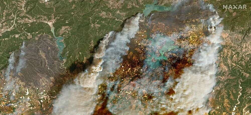Uydu fotoğraflarında Manavgat'taki orman yangınının boyutu gözler önüne serildi