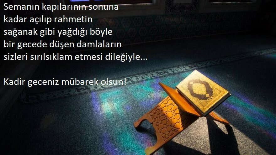 Bu gece kulun yalvarış ve yakarışlarını Yüce Mevla'ya sunacağı ve O'nun sonsuz affından, merhametinden, iyiliğinden bol bol yararlanacağı umut, huzur ve müjde gecesidir Kadir gecesiniz hayırlı olsun