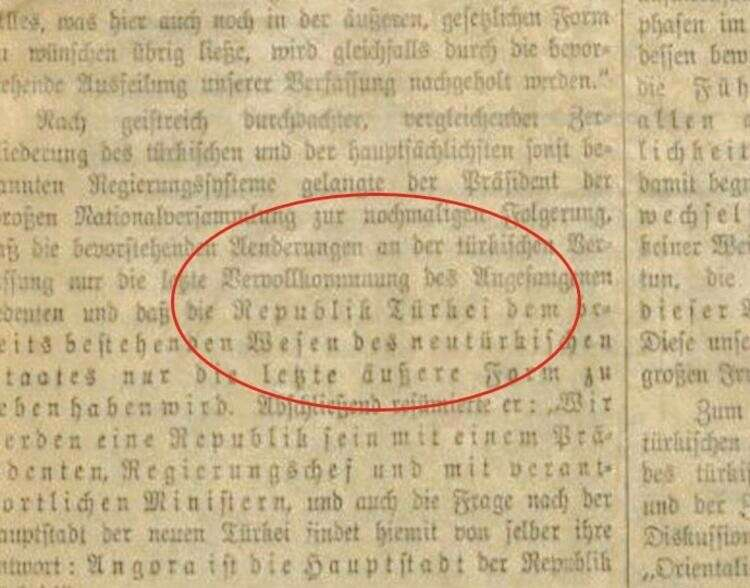 Henüz Ankara'da bile kimse duymazken dünya işte bu haberden öğrendi. Haberin en önemli bölümü "Mustafa Kemal Paşa milli Türk hareketinin başlangıcından bu yana titizlikle kullanılmayan Cumhuriyet kelimesini kullandı" cümlesiyle vurgulanıyordu.