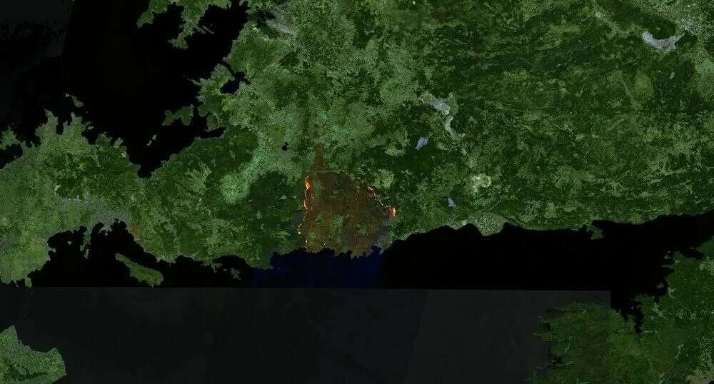 GÜNDOĞMUŞ - SONRASI 1 Ağustos tarihli uydu görüntüsünde ilçedeki yangın görülüyor.