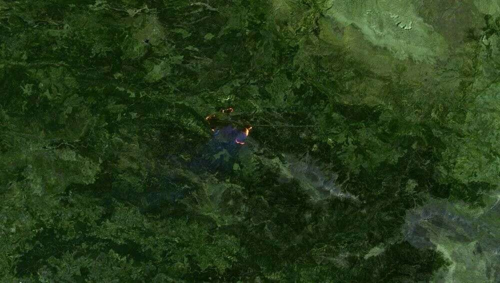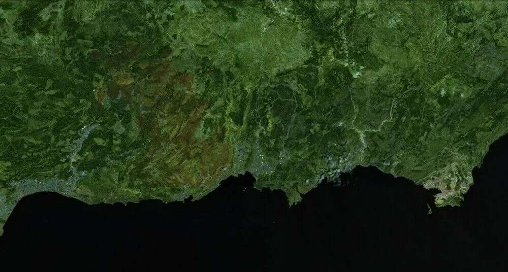 GÜNDOĞMUŞ - ÖNCESİ Antalya'nın Gündoğmuş ilçesinin 27 Temmuz tarihine ait uydu görüntüsü.