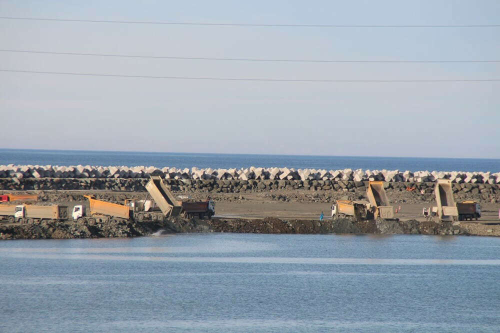 "ÖZEL TEKNİKLERLE İNŞAAT DEVAM EDİYOR" Çok özel teknikler kullanılarak inşaatların devam ettiğini hatırlatan Vali Çeber, "Dolguyu yaparken taşı toprağı alıp gidip denize doldurmuyoruz. Çok özel tekniklerle denizin altı iğne gibi işleniyor. Denizin altında dalgıçlar var. Taşlar büyüklüğüne göre yerlere yerleştiriliyor. Aynı zamanda üst yapımız da böyle. Hem deniz hem iyot hem tuz, bölgemizin coğrafi özelliklerinden dolayı çok özel materyallerin kullanılması ve özel tekniklerin kullanılması gerekebiliyor" diye konuştu.