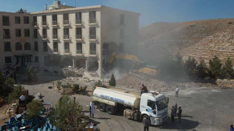 Mülkiyeti Halfeti Belediyesi’ne ait olan, 2014 yılında belediye tarafından bir turizm firmasına protokolle kiraya verilen Şimaliye Mahallesi’nde 21 bin 519 metrekarelik arazideki 4 katlı, 3 yıldızlı otelin, ilçenin silüetini bozduğu gerekçesi ile Şanlıurfa Kültür Varlıklarını Koruma Bölge Kurulu'nca yıkılmasına karar verildi.