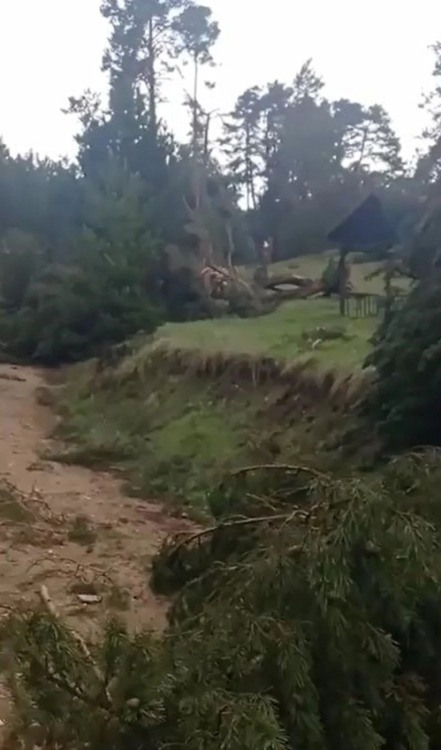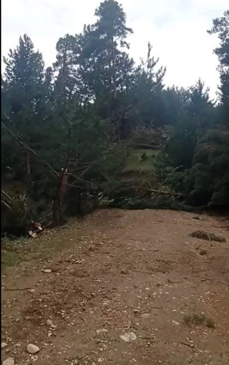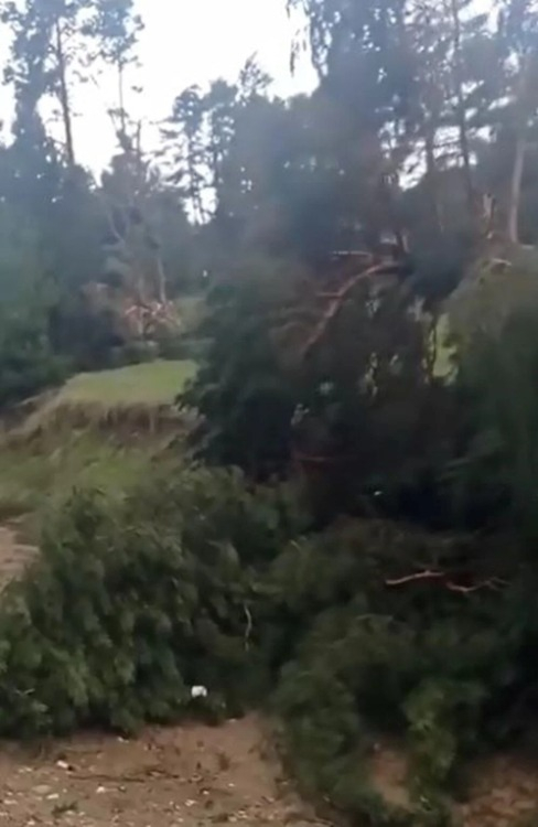 Mesire alanının da yer aldığı ormanda, kimsenin bulunmadığı sırada çıkan hortumda bazı ağaçların yola devrildiği görüldü.