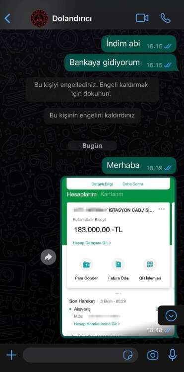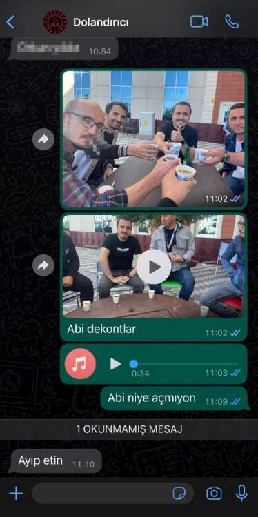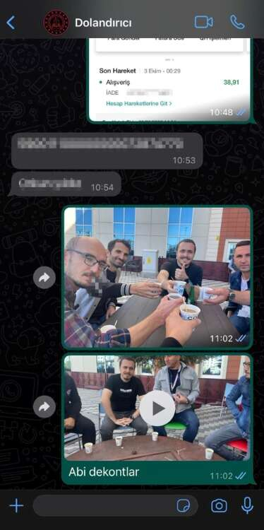 Buna inanan dolandırıcı Çağlar’a 200 TL para gönderdi. Çağlar ve arkadaşları ise 180 bin TL’lik dekont yerine dolandırıcıya kahve içerken çekilmiş bir fotoğraflarını gönderip, “Senin para ile kahve içtik, hakkını helal et.” şeklinde mesaj attılar.