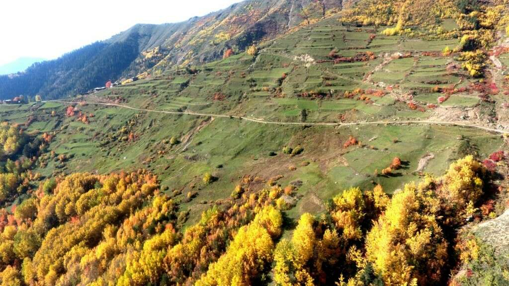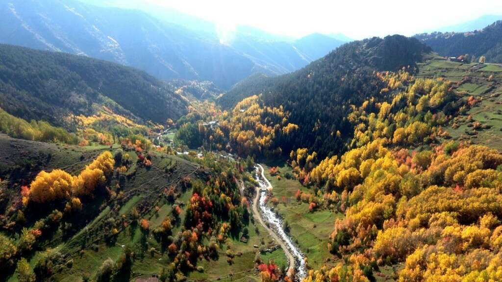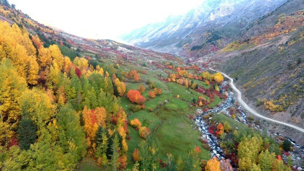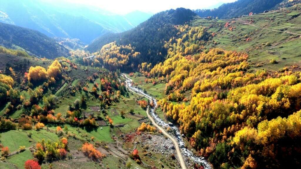 Yeşilin yanı sıra sarı, turuncu ve kırmızının tonlarını sergileyen ağaçlar görenleri kendisine hayran bırakıyor. Köyün havadan çekilen fotoğrafları ise eşsiz güzelliği bütünüyle ortaya koyuyor.